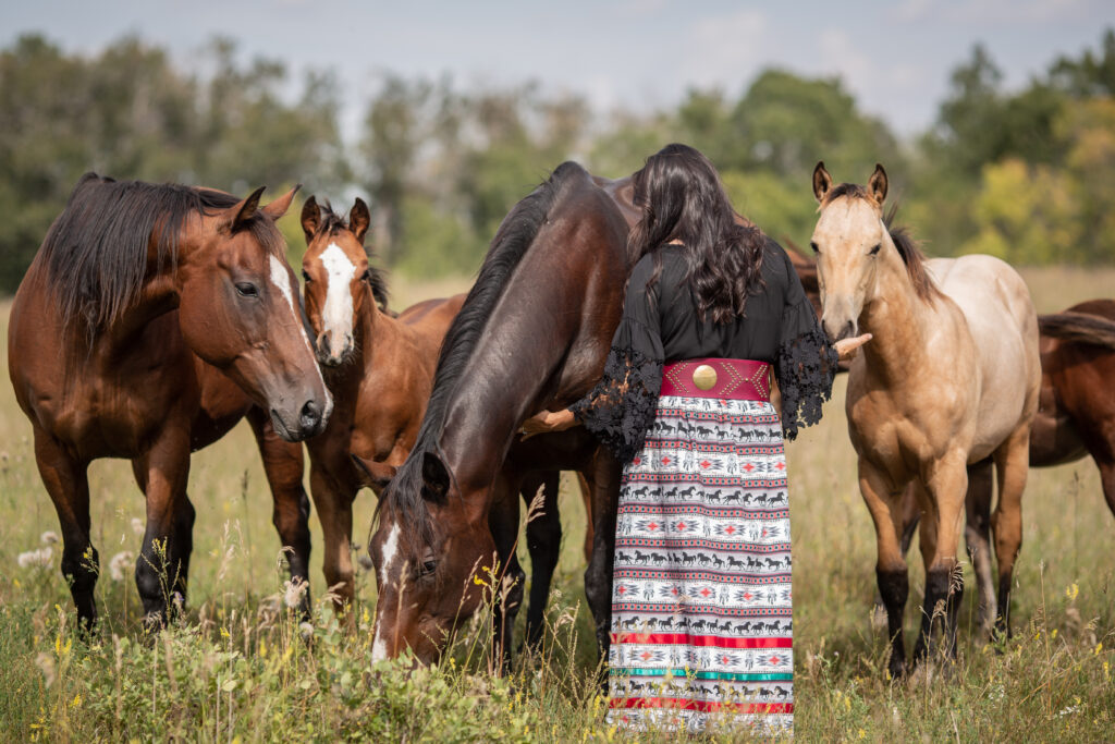 We collaborate with Indigenous communities and have an elder on our team to incorporate traditional knowledge and practices into our equine-assisted education. She leads each session with a prayer and smudge to encourage the session to go in a positive way. We are also proud to note that we have an all Indigenous team.